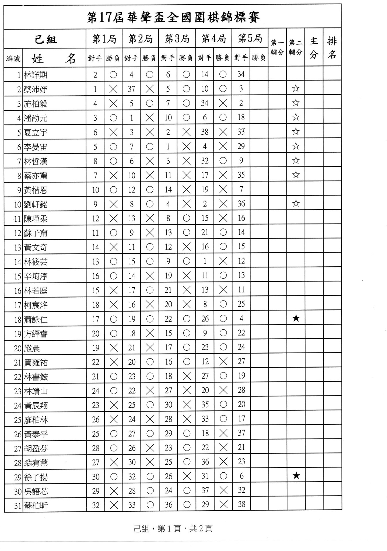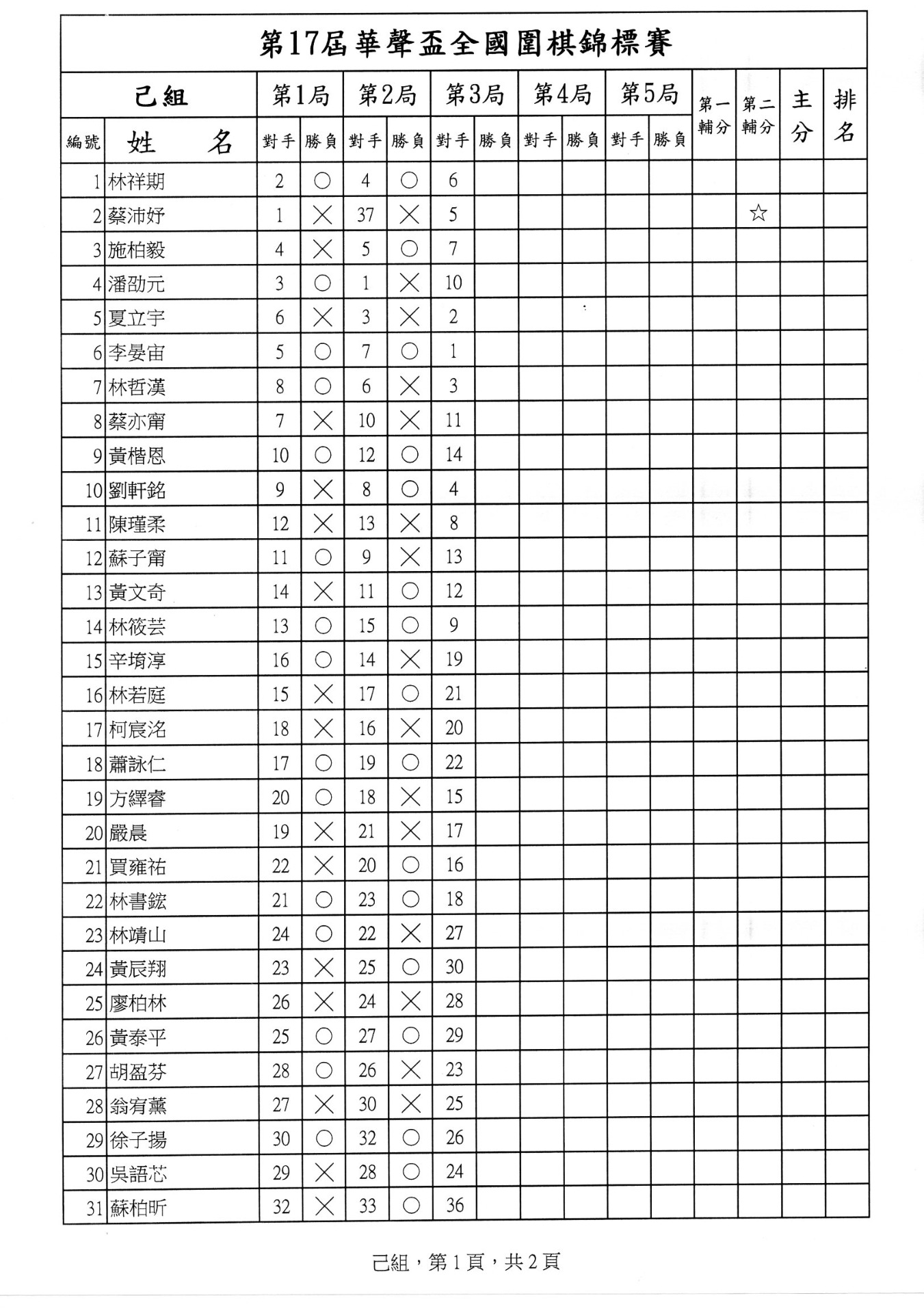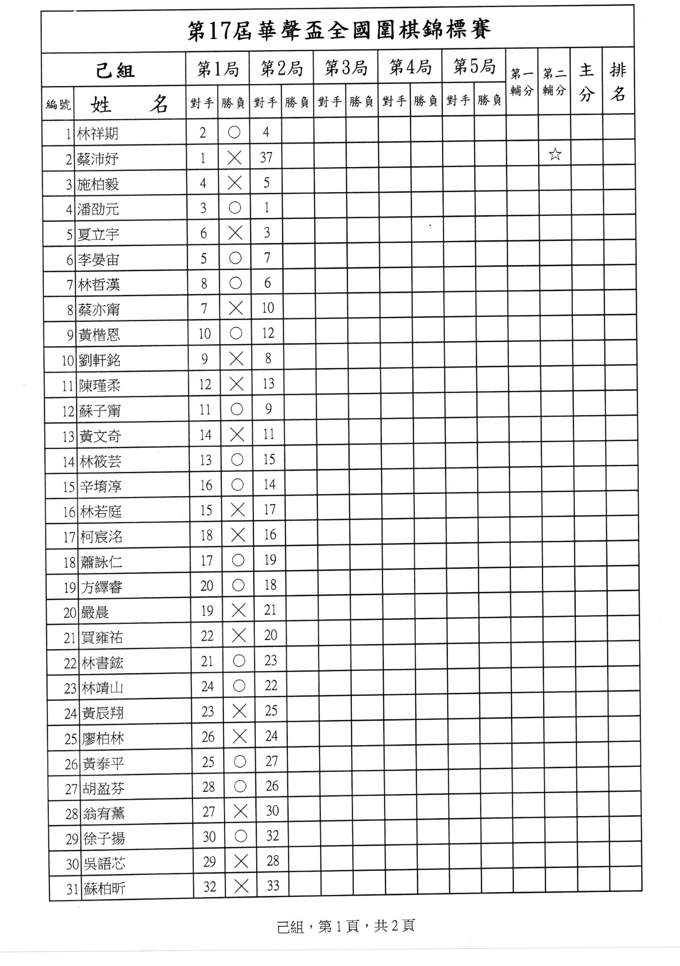 第一局成績暨第二局賽程