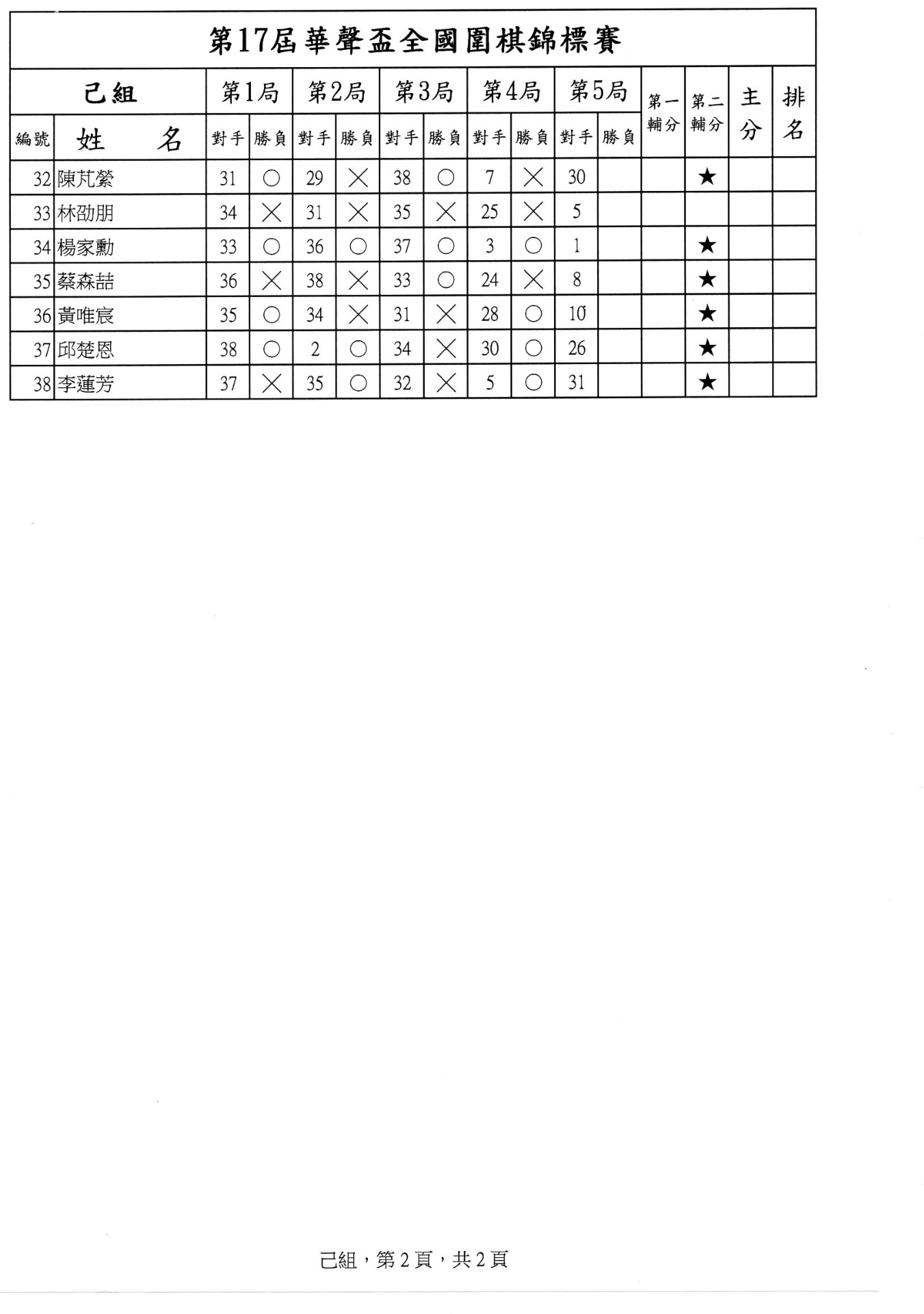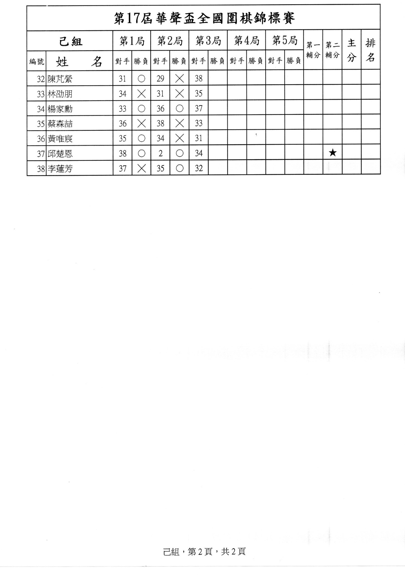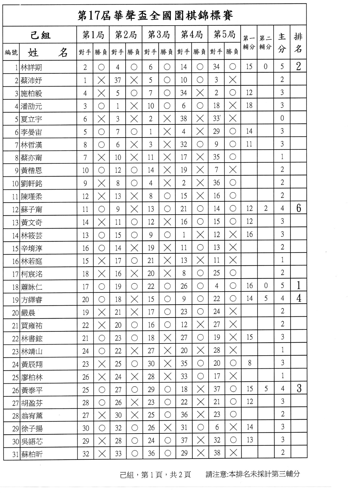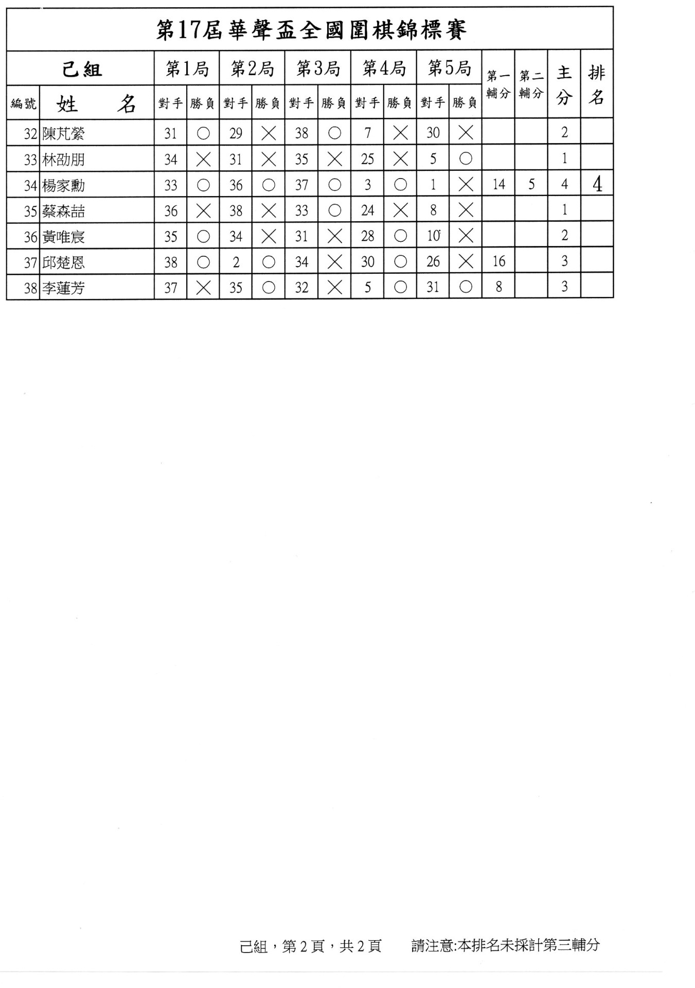 第二局成績暨第三局賽程
