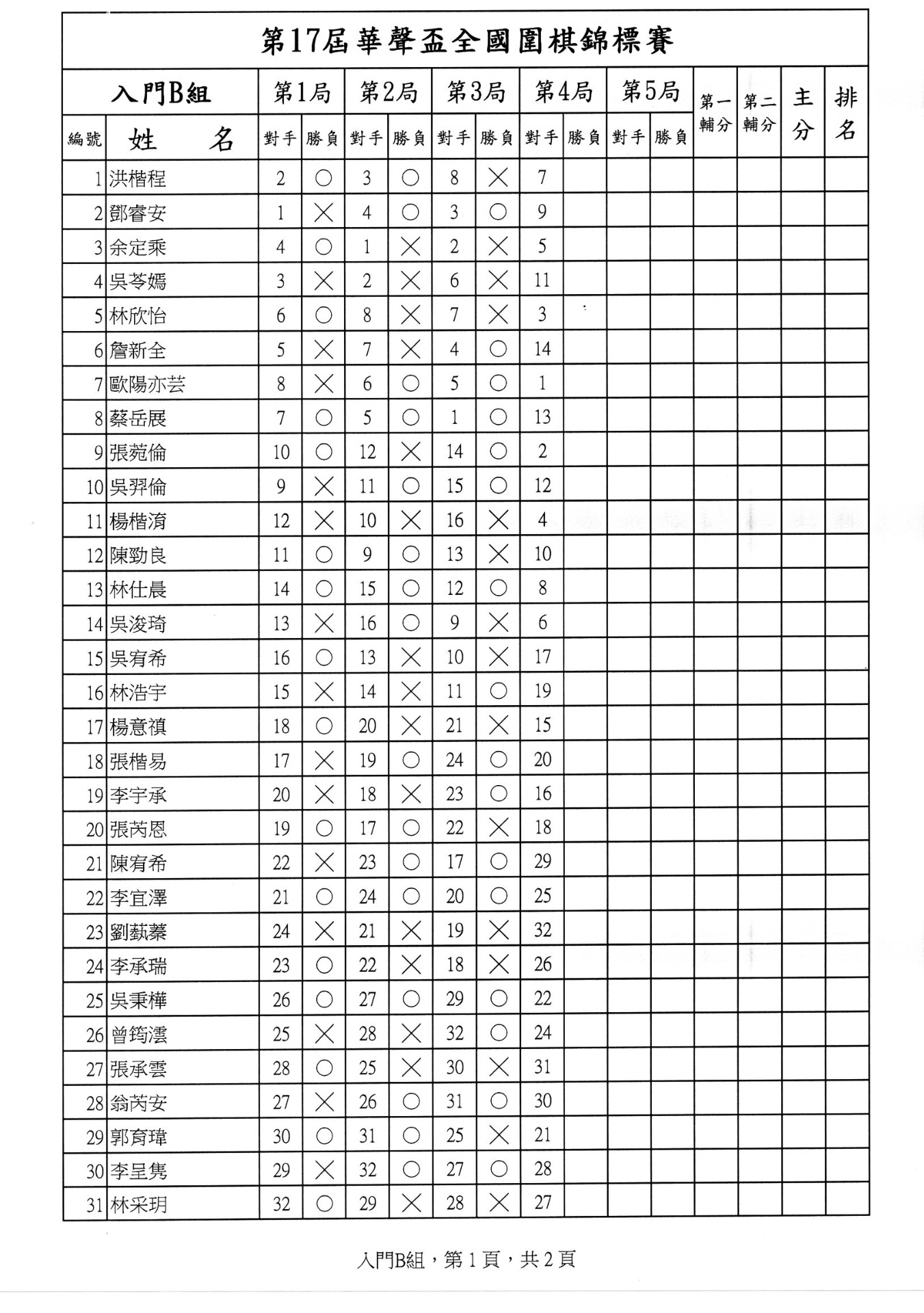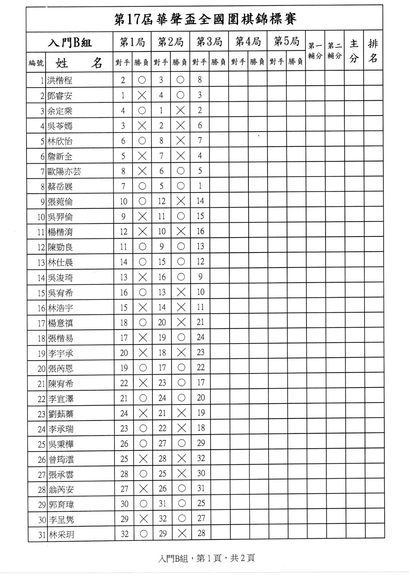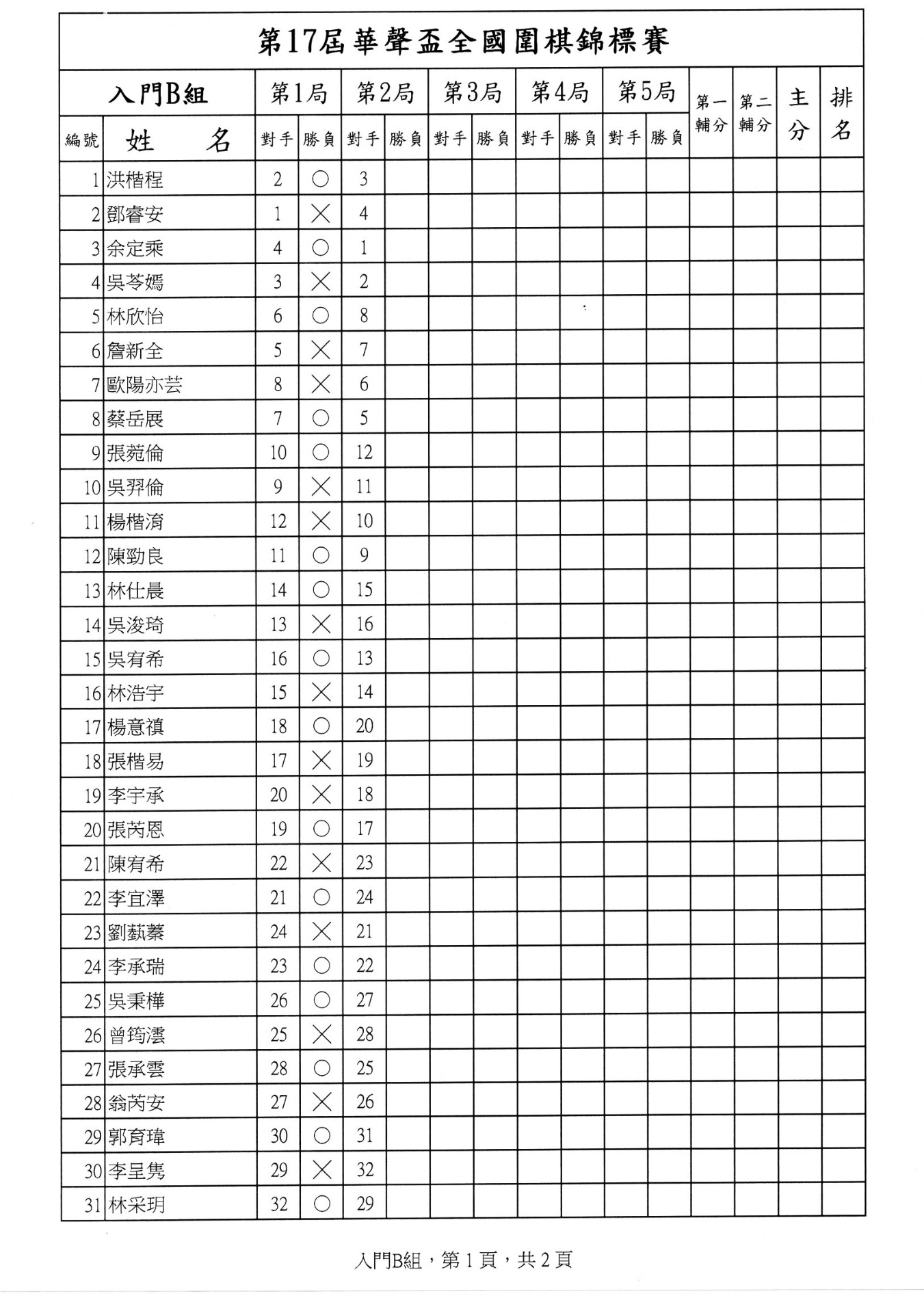 第一局成績暨第二局賽程