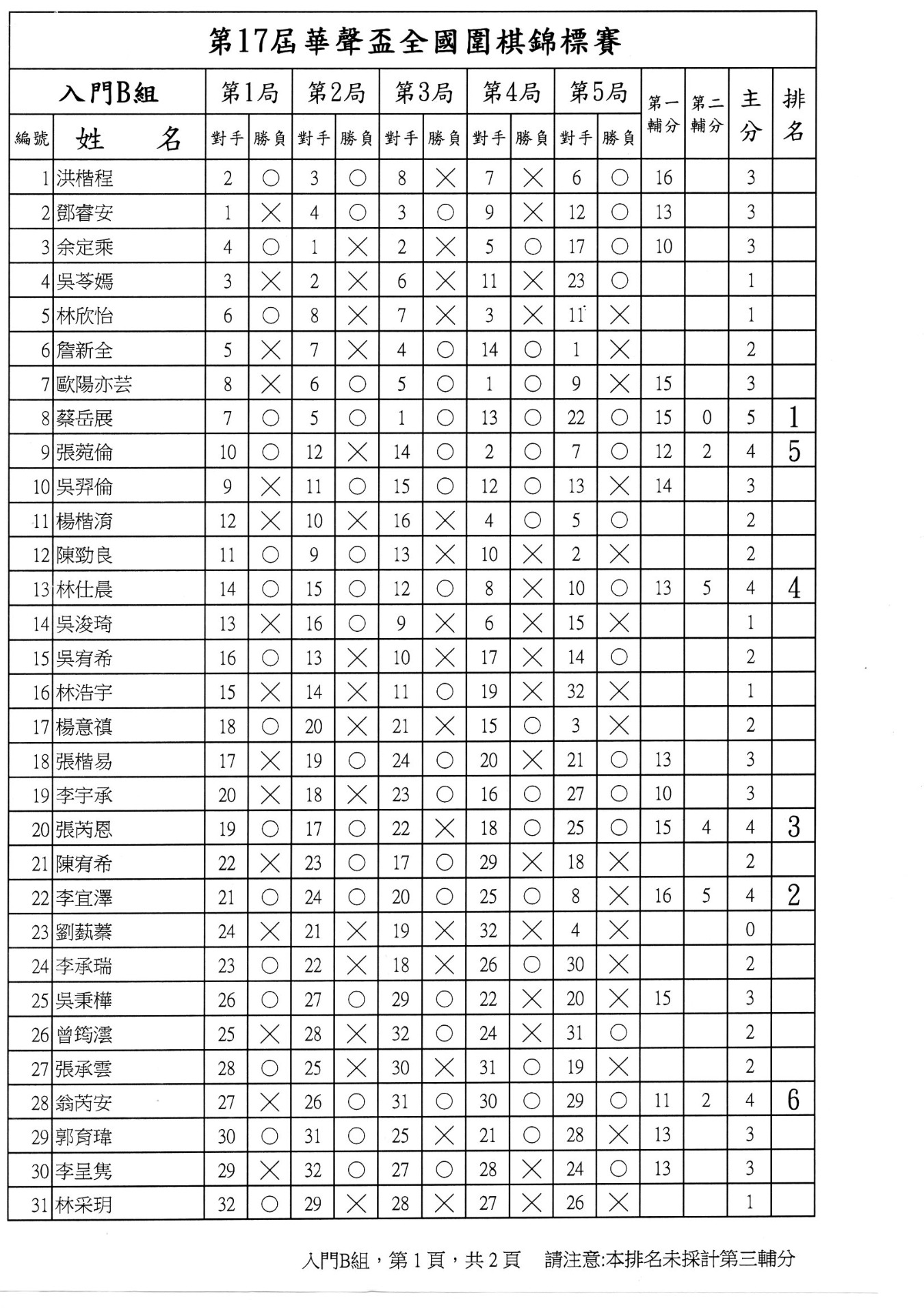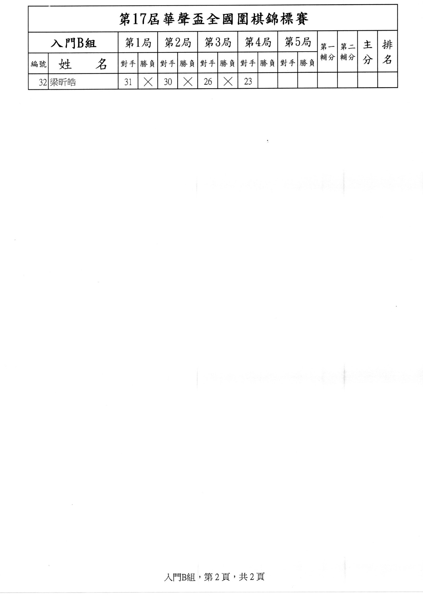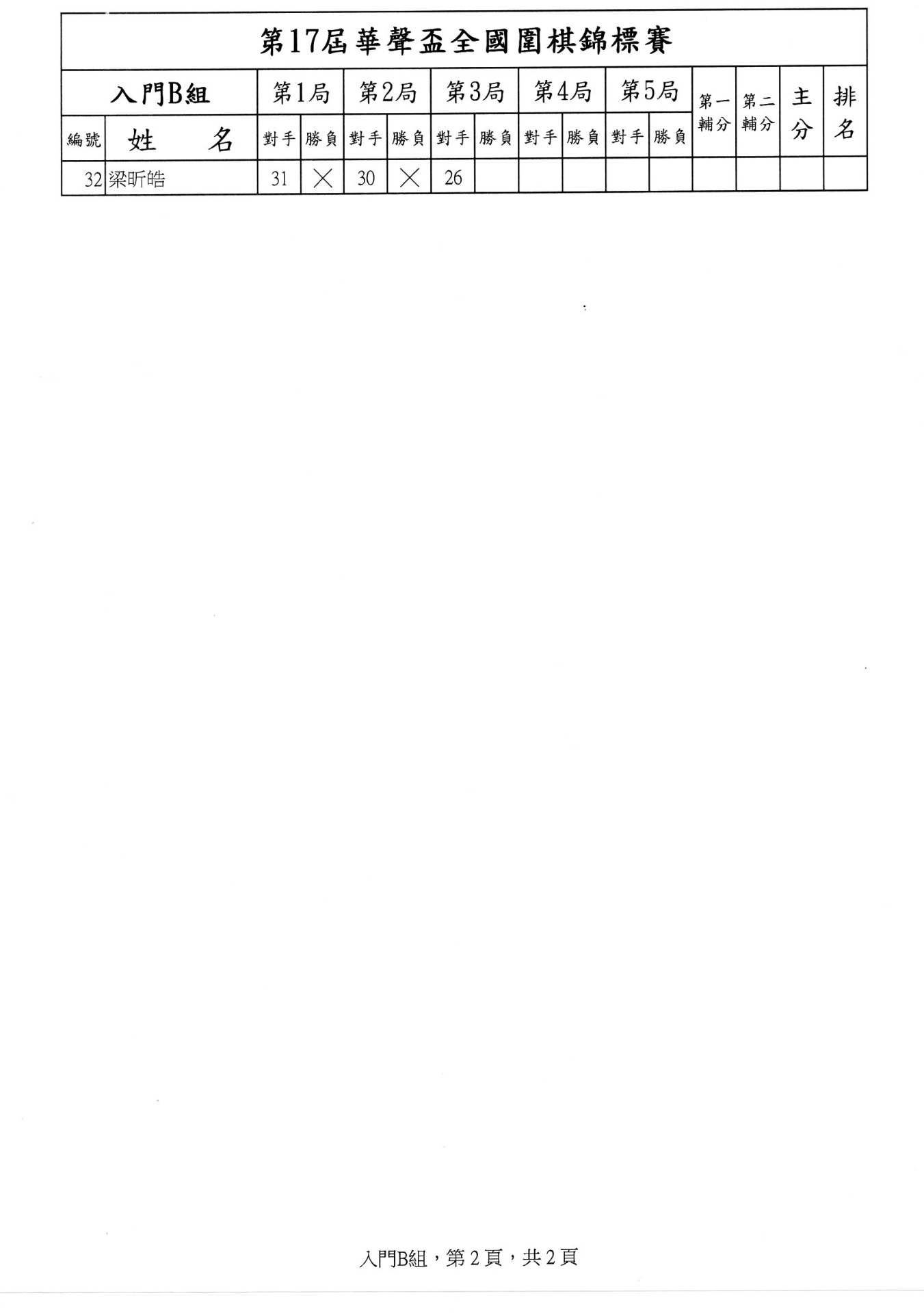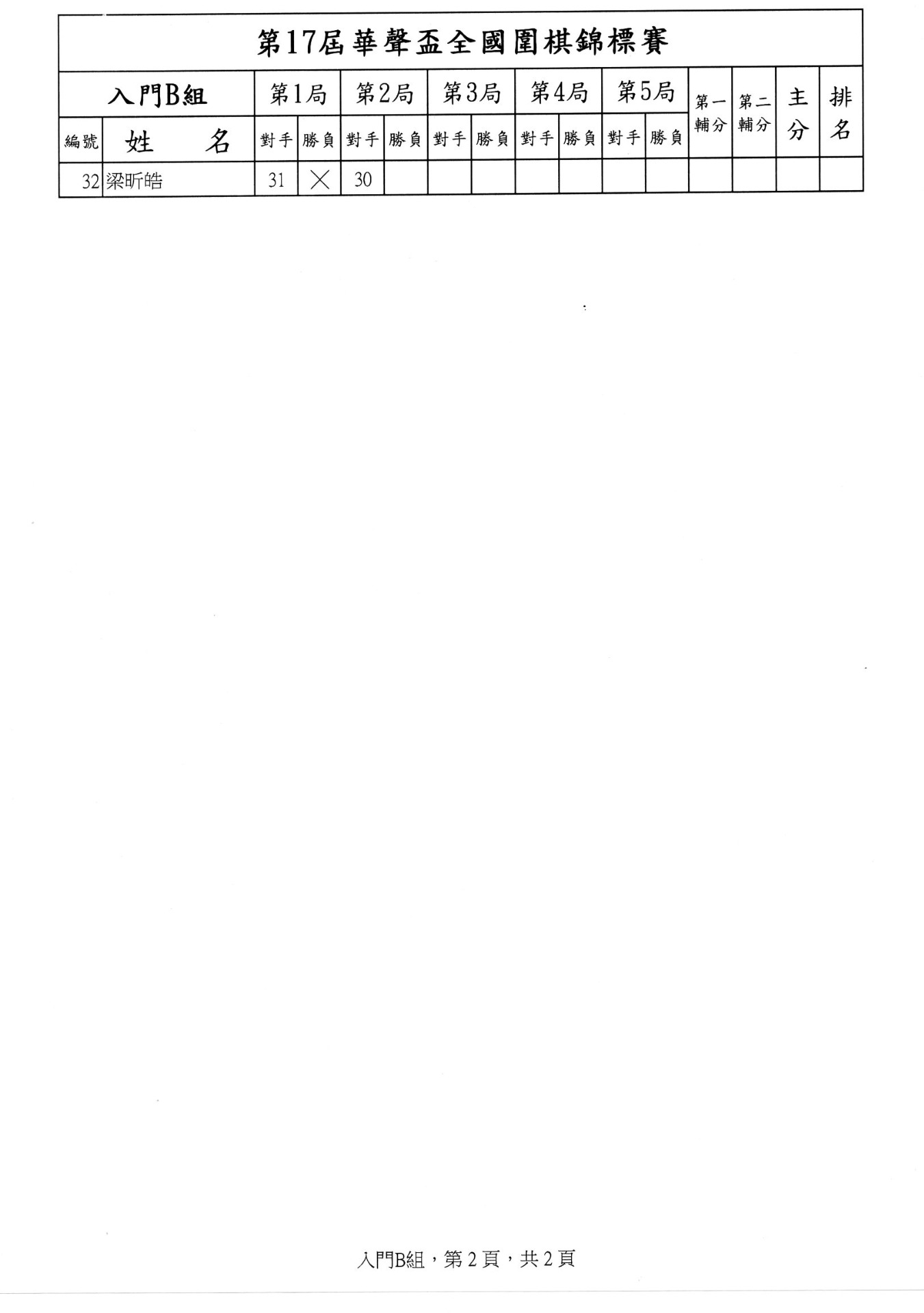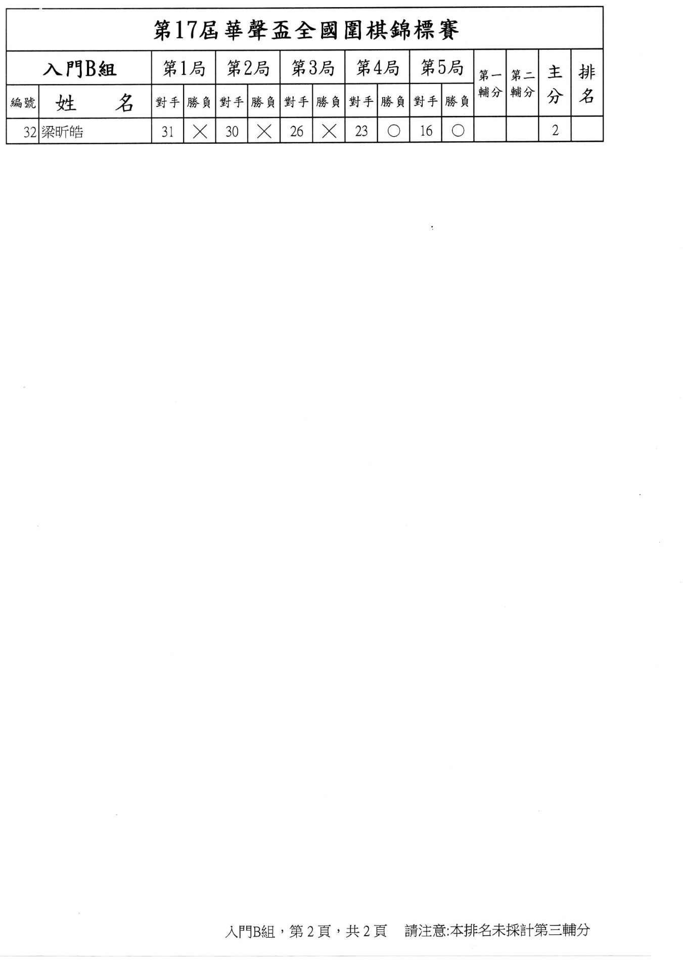 第二局成績暨第三局賽程
