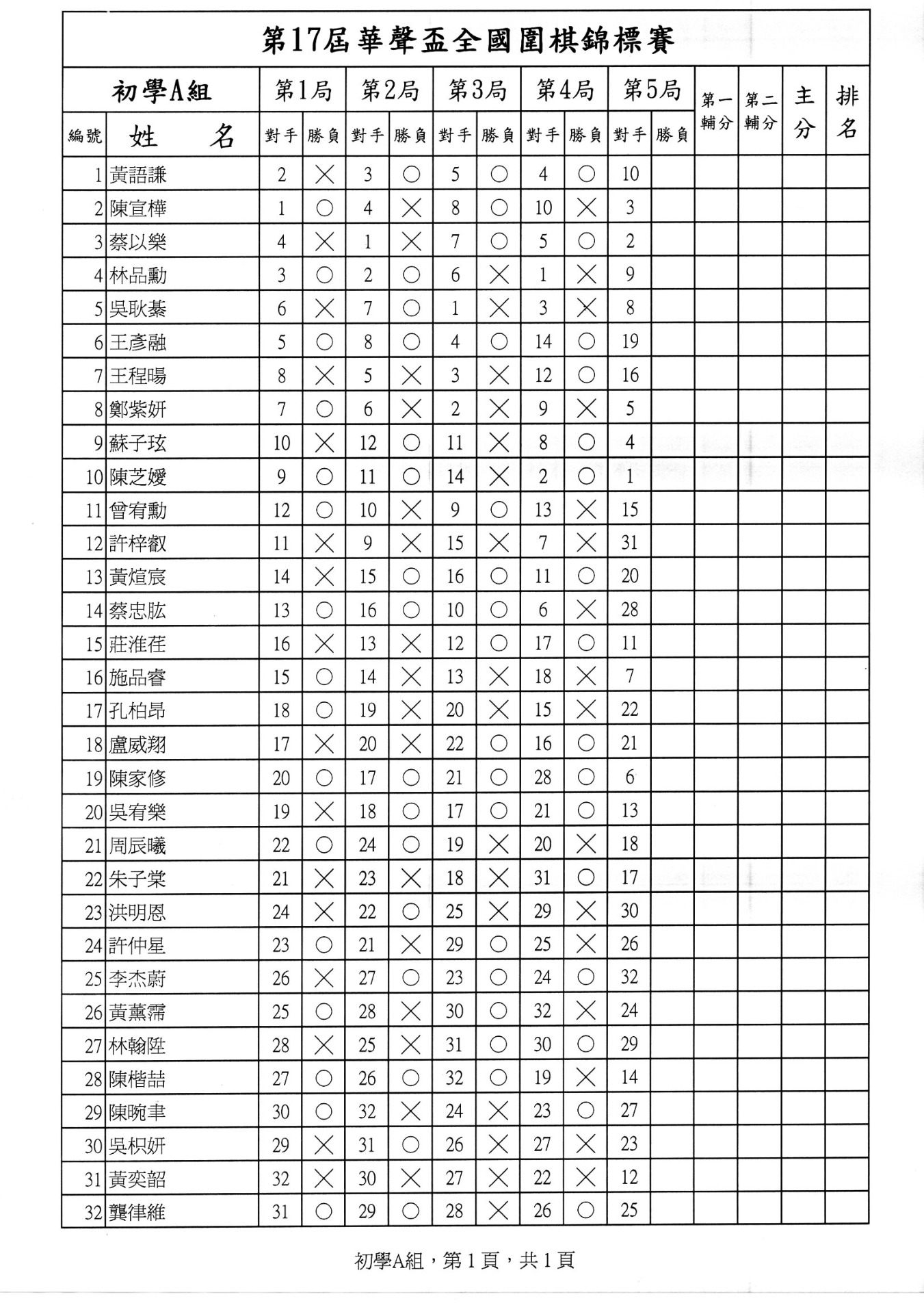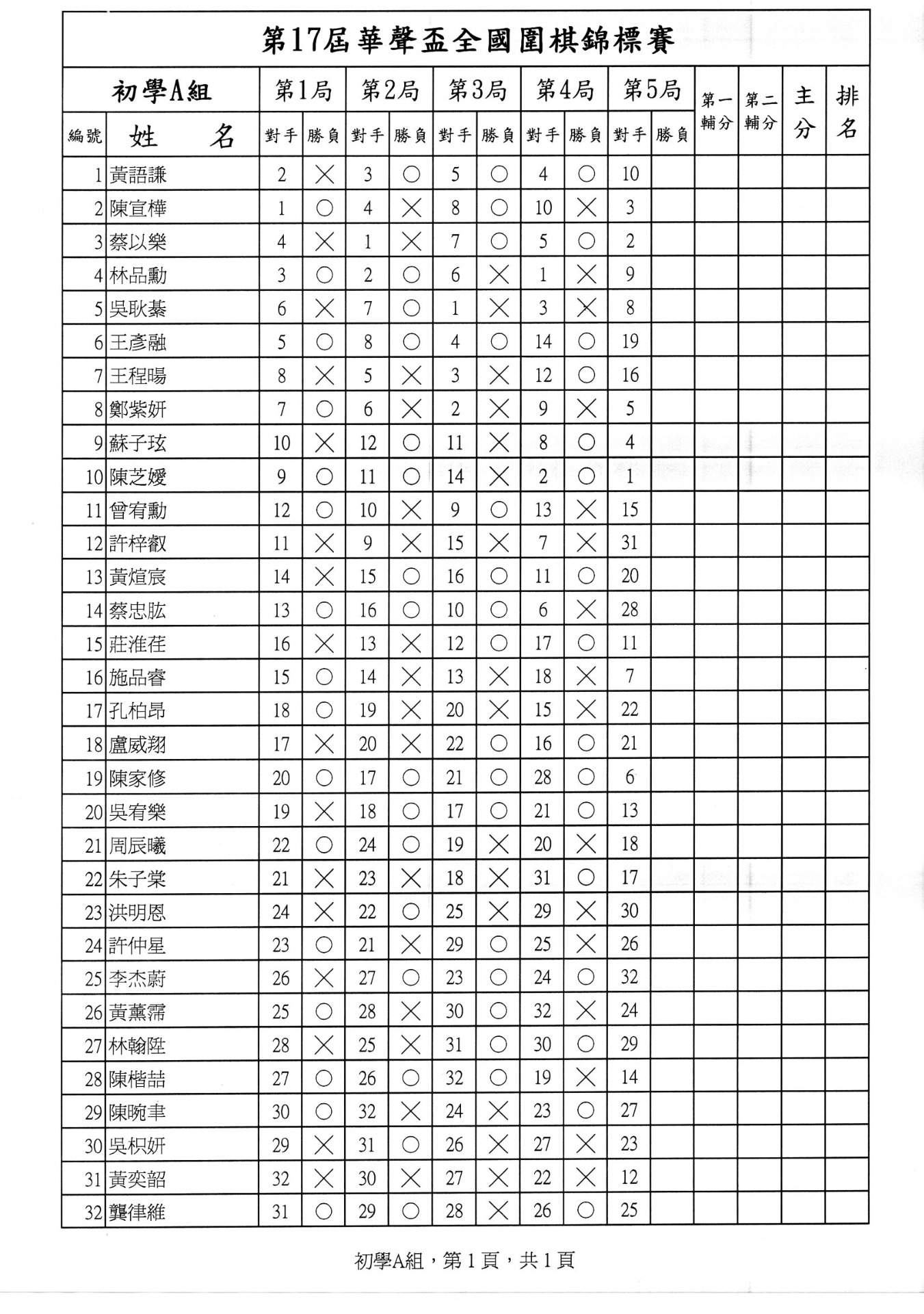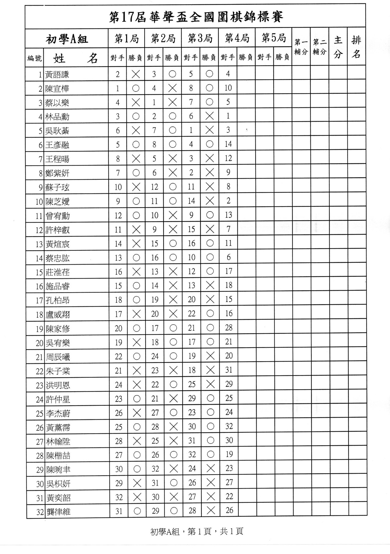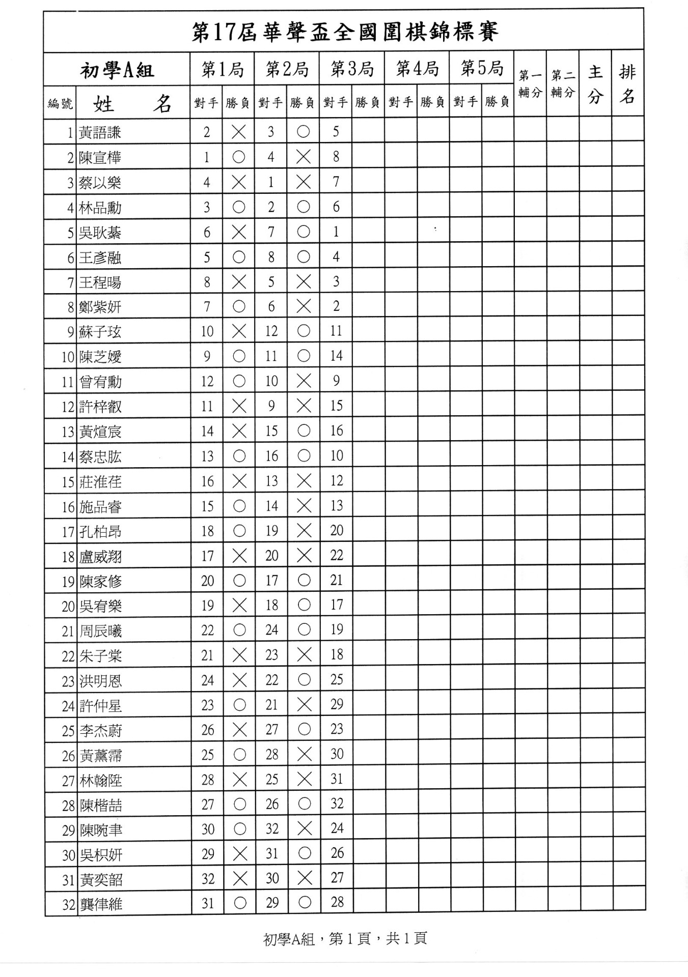 第一局成績暨第二局賽程