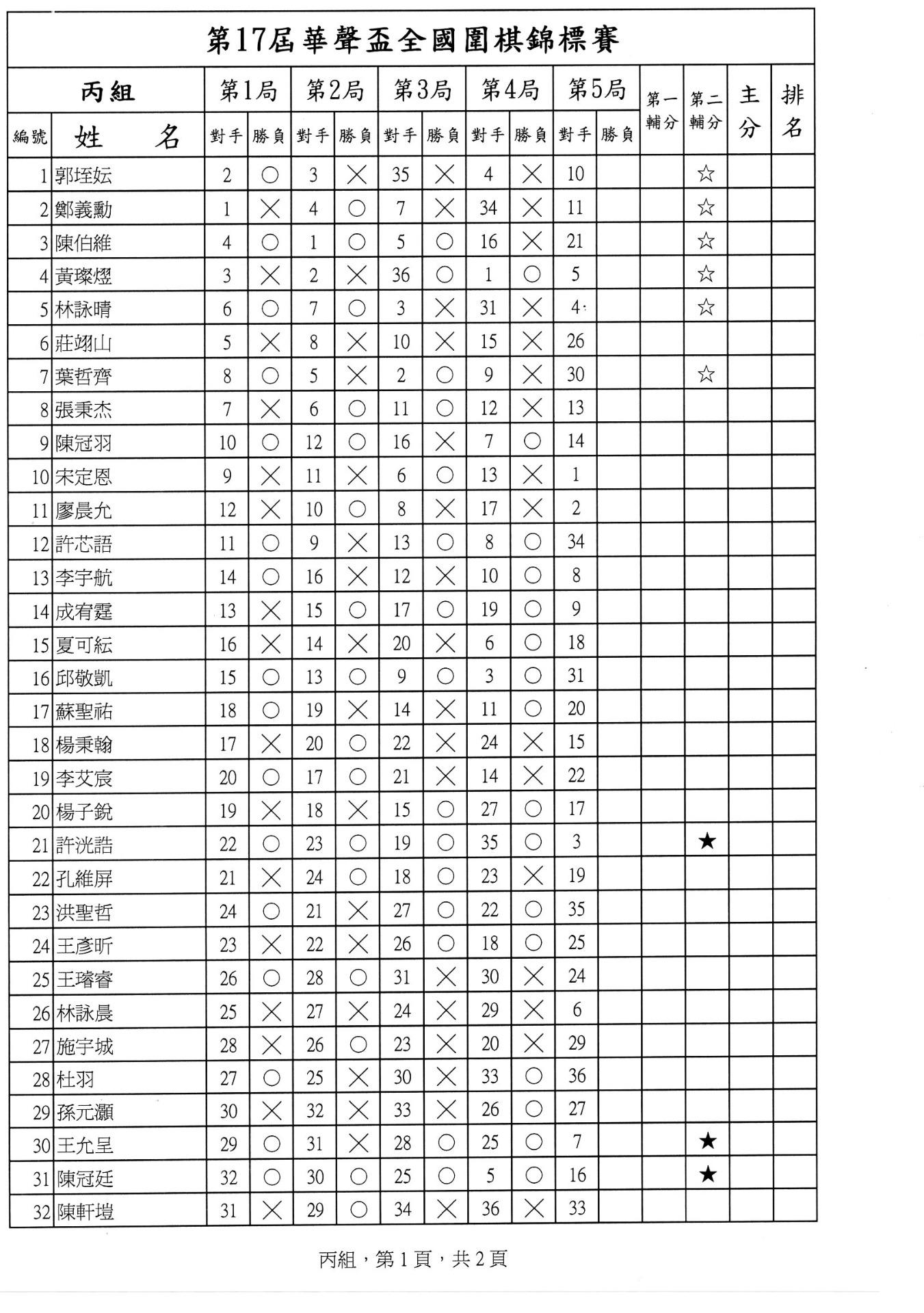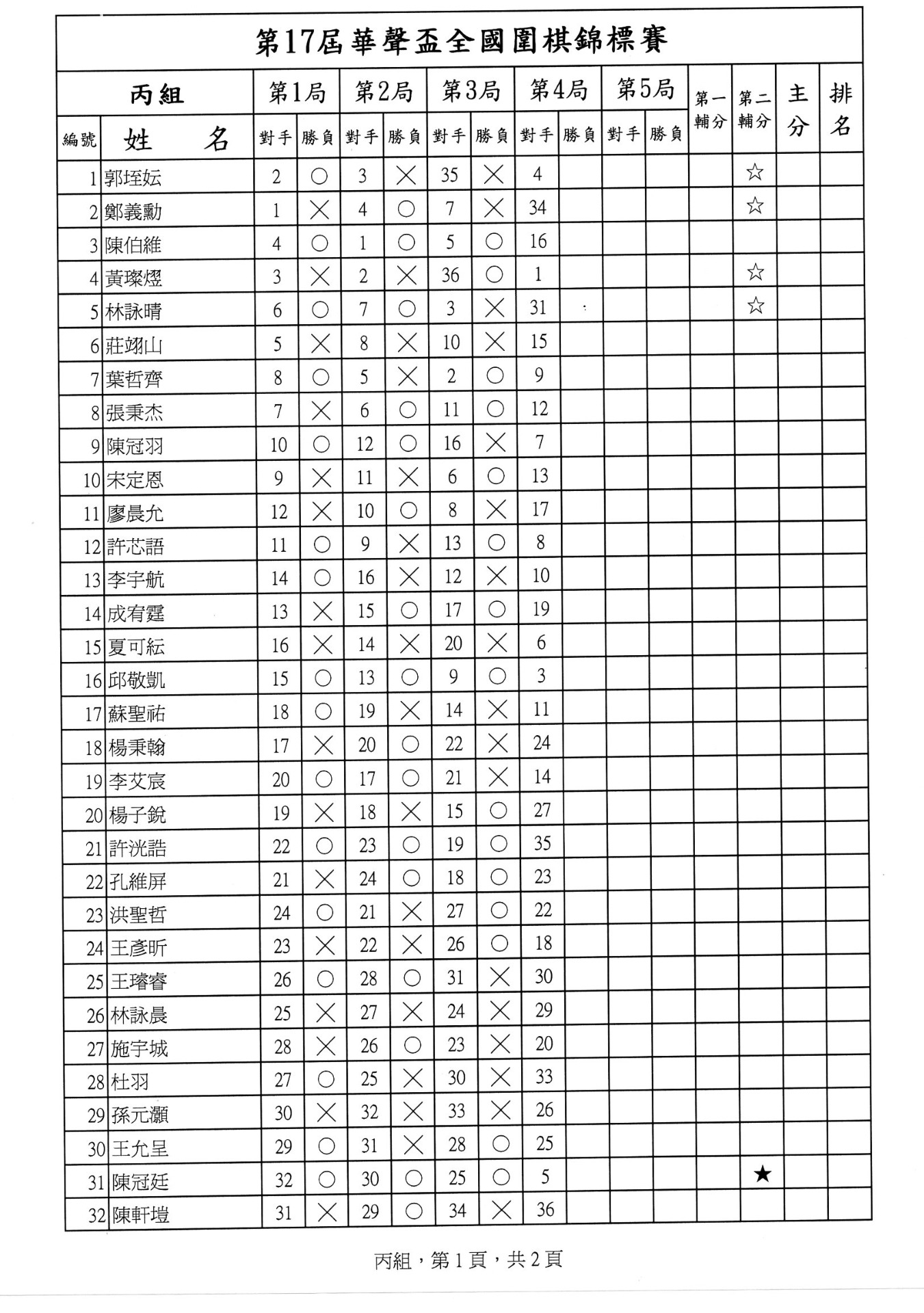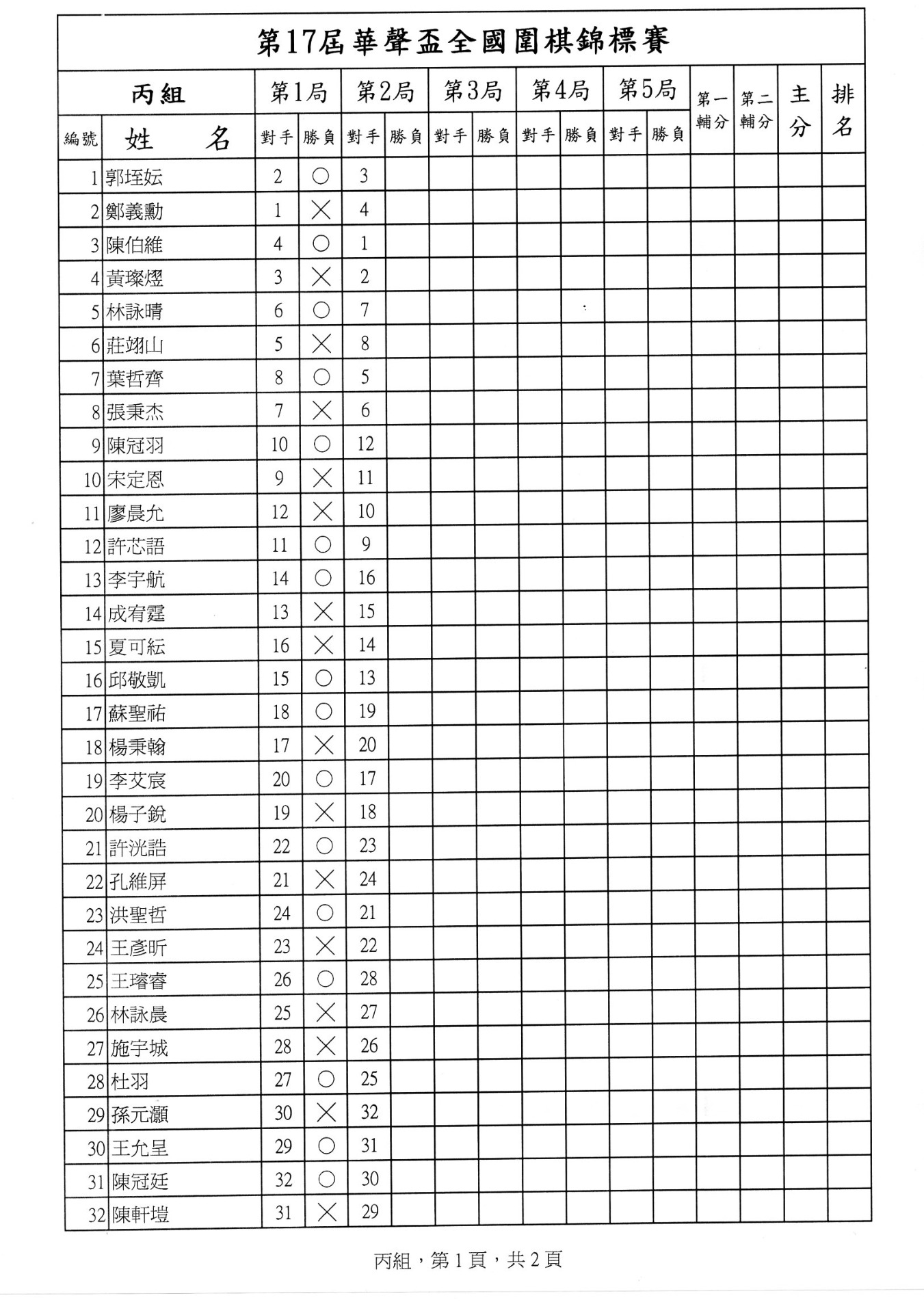 第一局成績暨第二局賽程
