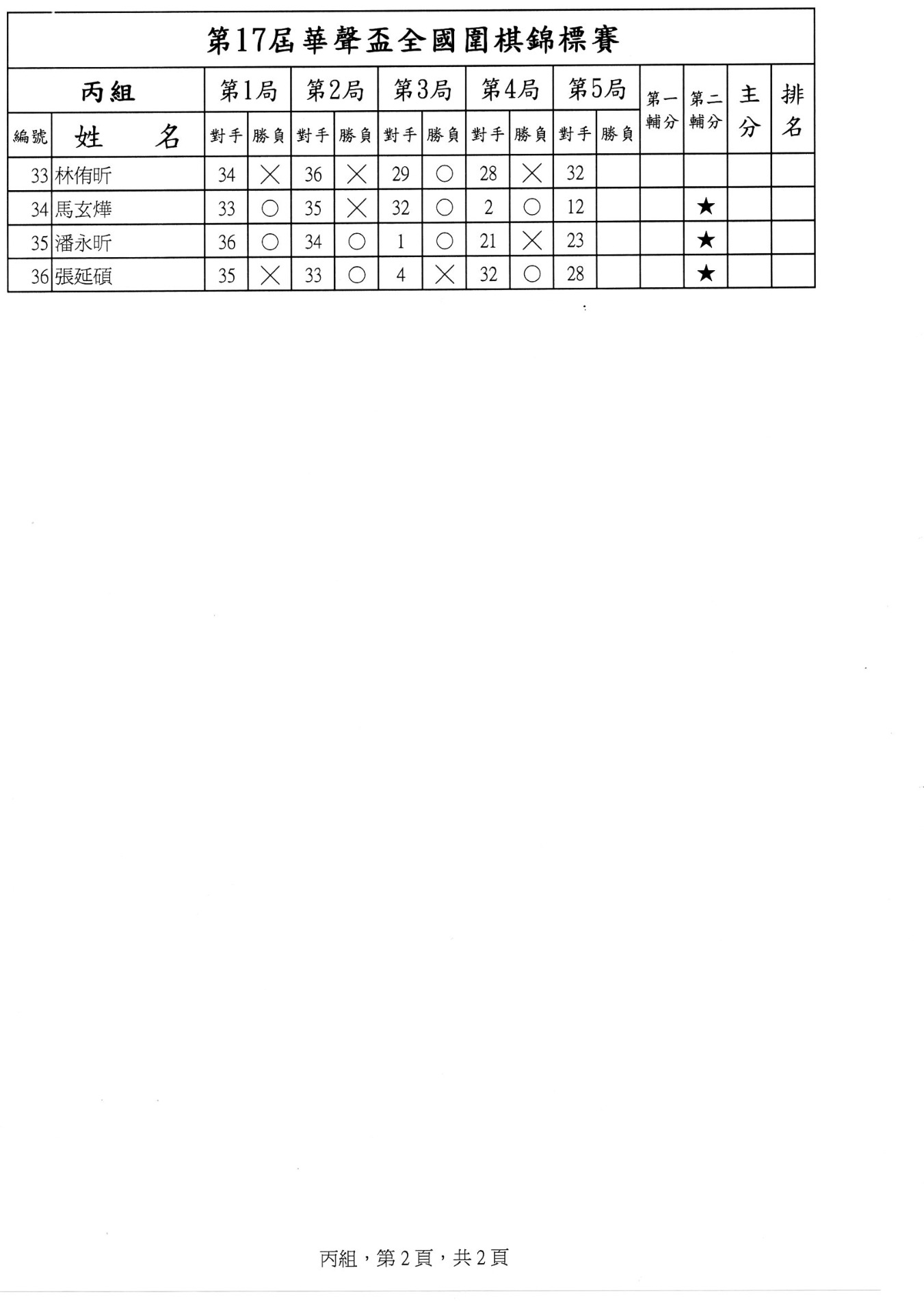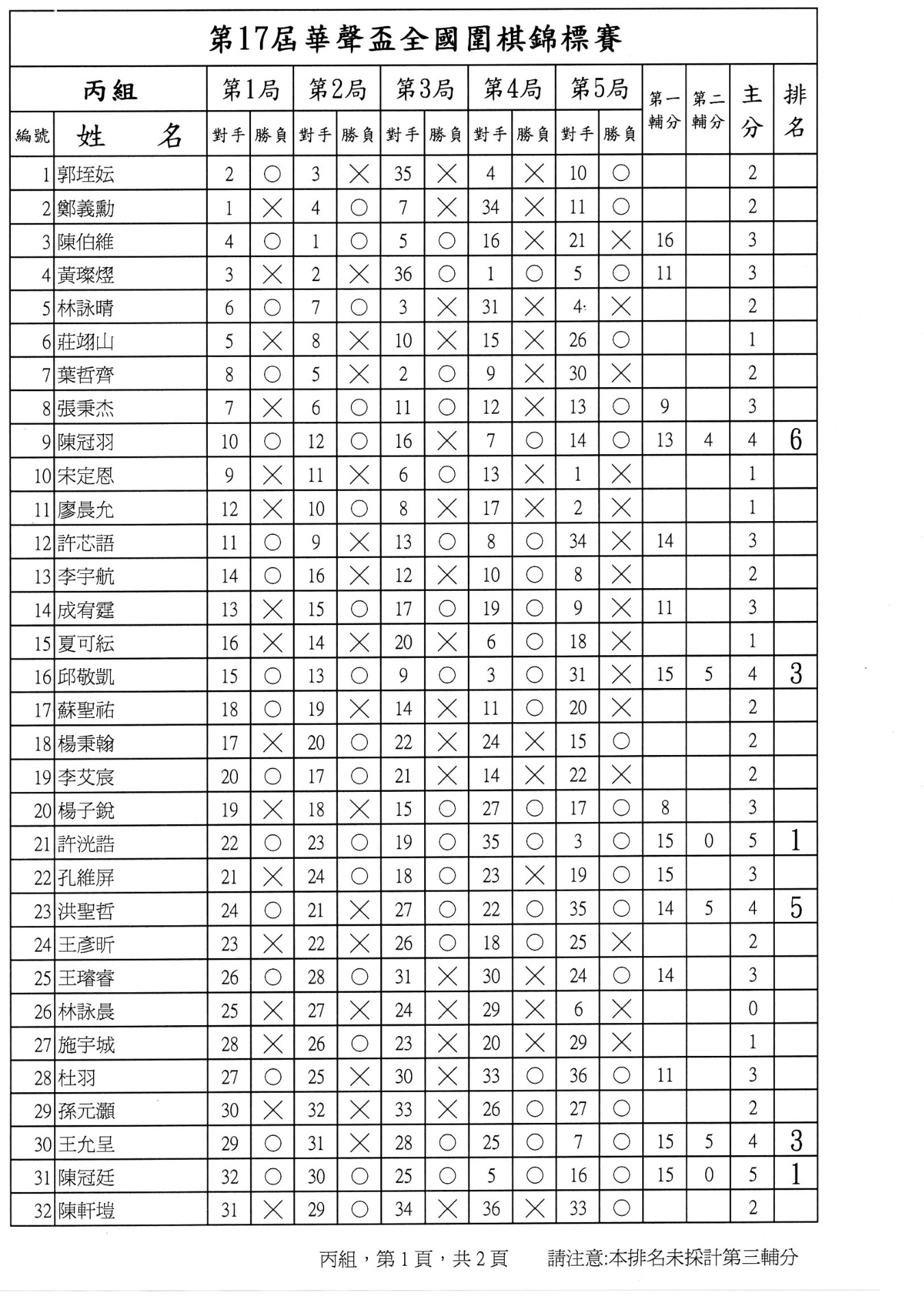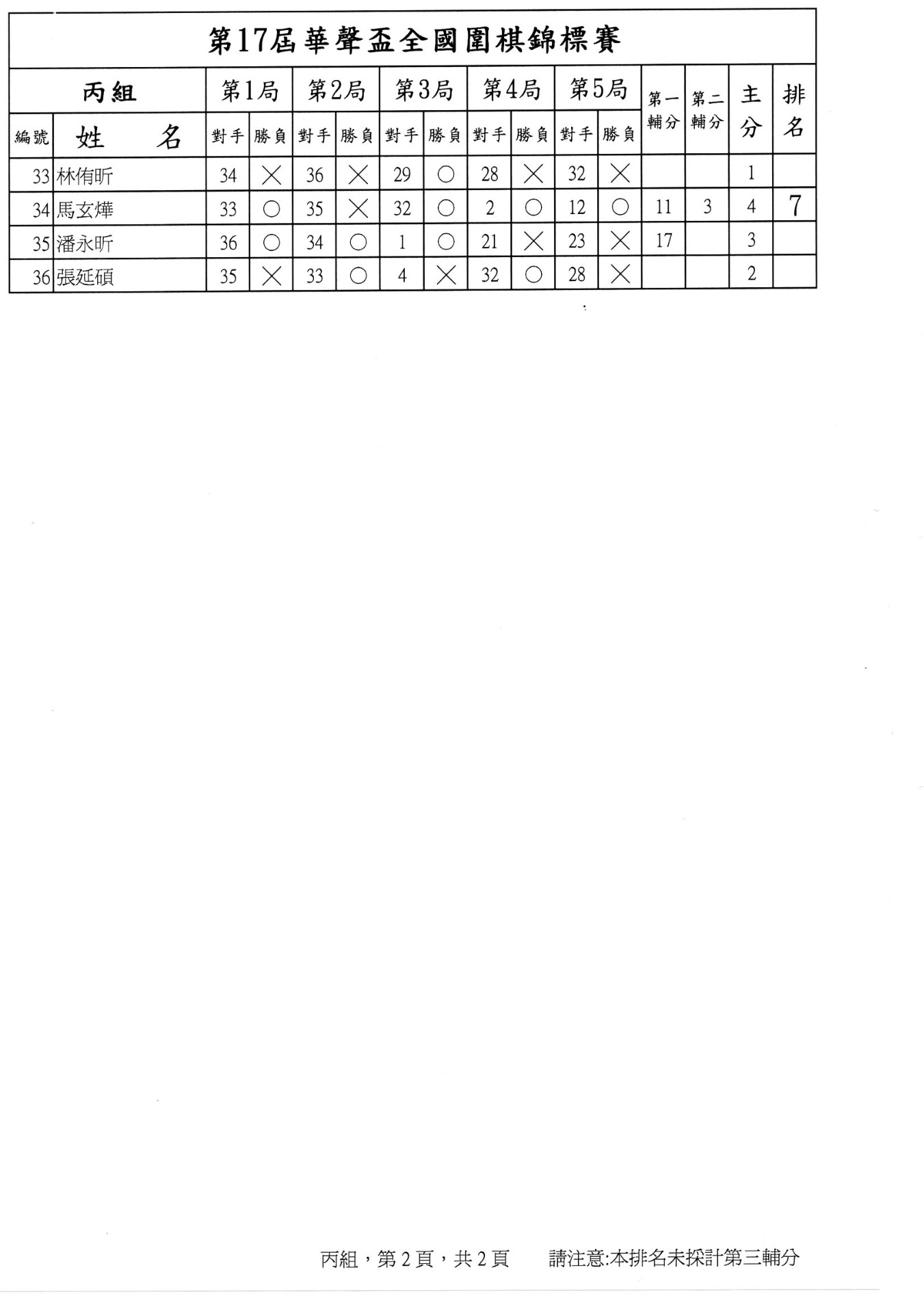 第二局成績暨第三局賽程